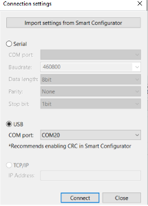 - Navigate to the Data Connection tab and connect to the board using the appropriate COM port.
