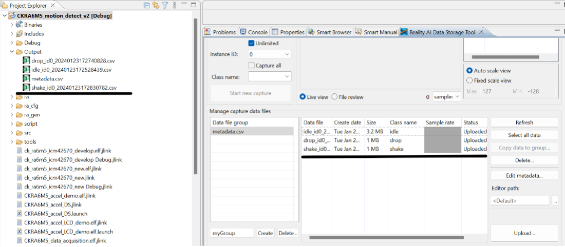 Demo project files provided by the Reality AI team (download link in Section 1 of this document)