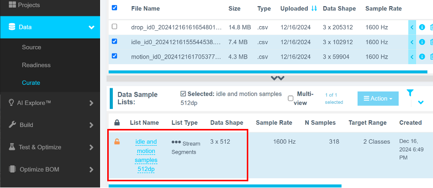 This lab uses sample data from the PMOD accelerometer (ICM-42670P) captured using the Reality AI Monitor. These datasets will be used to train, validate, and test the asset movement recognition model in the Reality AI Tools portal.