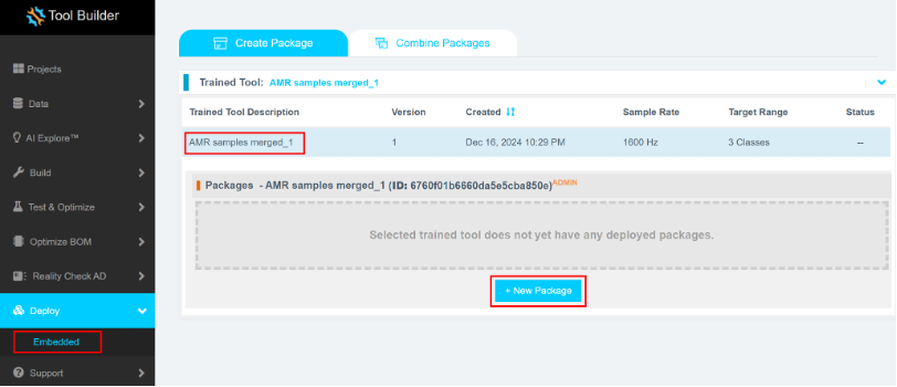 - In the Inference Module dropdown, select the deployed model that was created using Reality AI Tools.