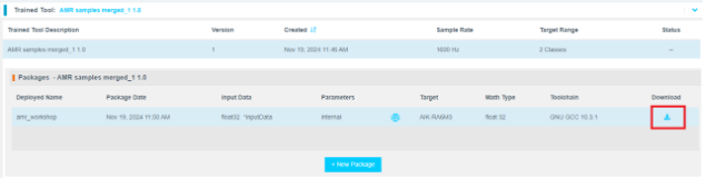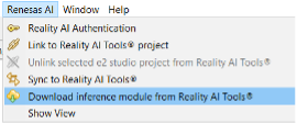 - Navigate to Renesas AI > Download inference module from Reality AI Tools.