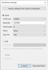 • Set the Baud Rate to 921600.