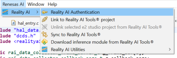 - In e² Studio, go to Renesas AI > Reality AI Authentication.