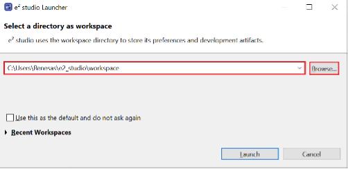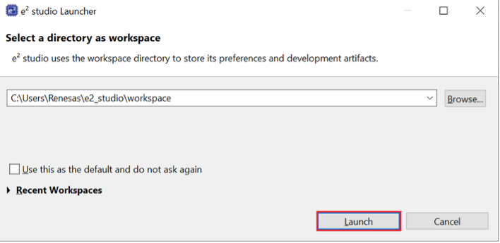 Step 2.1: Launch e² Studio and Select Workspace