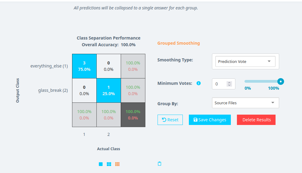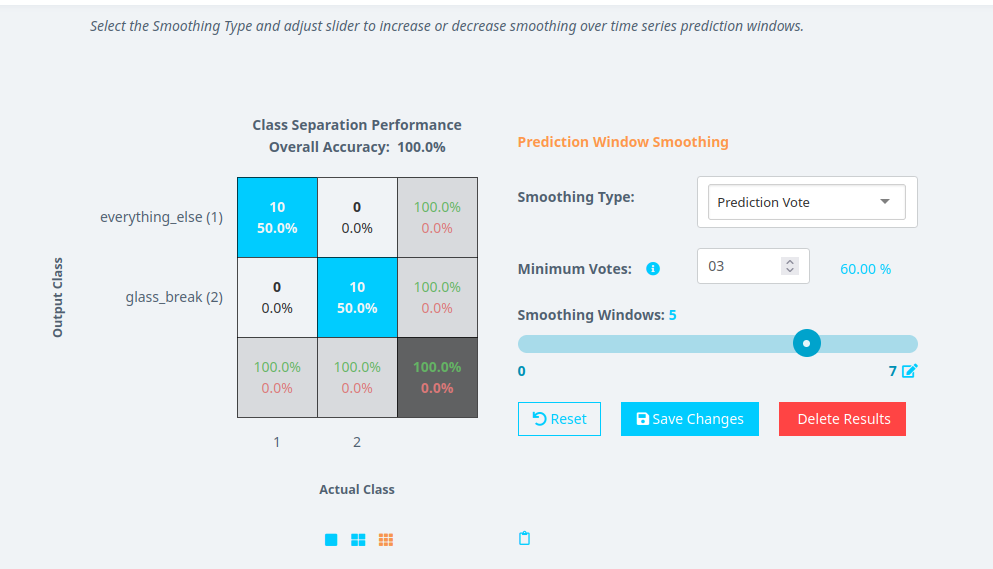 - Smoothing Window: Set the number of consecutive predictions over which the mode (most frequent value) will be calculated.