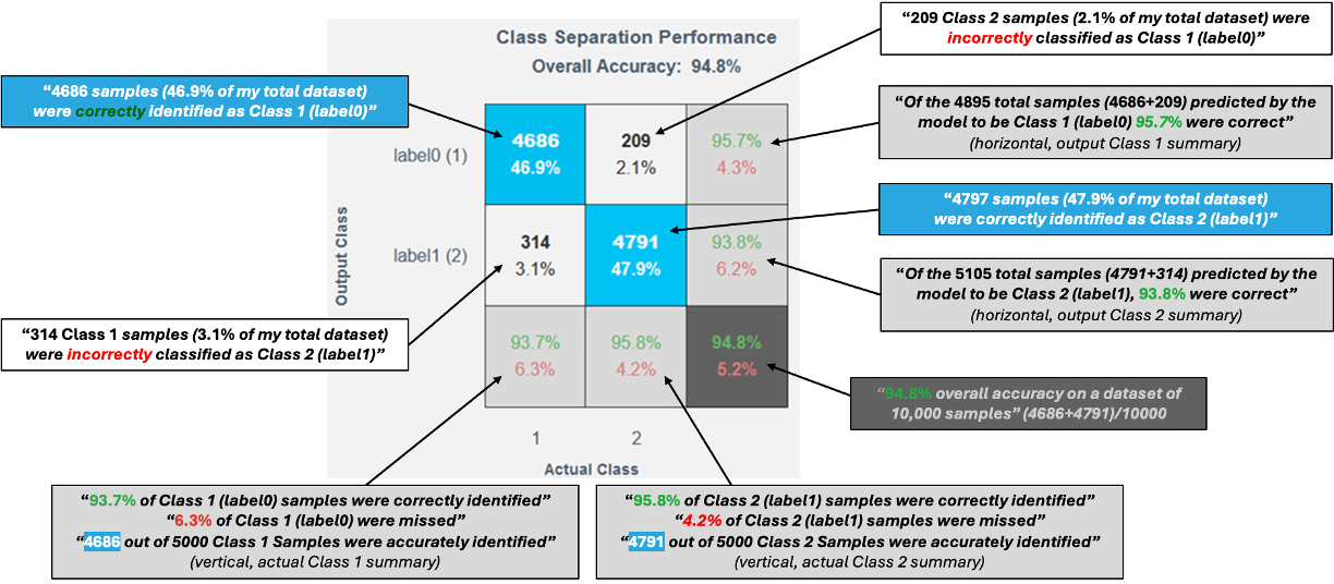 - 多クラスモデルでは、これらのセルはクラス間の混同を示します