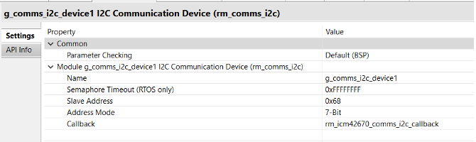 g_comms_i2c_bus1 (rm_comms_i2c), on the Properties tab, configure the following properties for this new module:- Name: