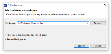 - If multiple versions of e² Studio are installed, launch the version that matches the installed FSP for this project.