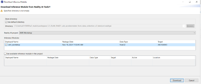 - Navigate to Renesas AI > Download inference module from Reality AI Tools.