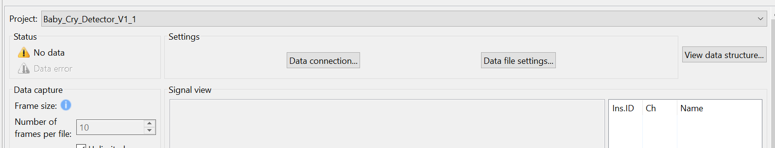 Reality AI Data Storage Tool で「Unlimited」にチェックを入れ、「Class name」欄に baby_cry を入力します。提供されている Baby Cry の音声ファイルをスマホやPCスピーカーで再生し、音声キットで録音してください。