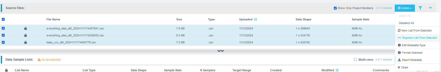 「Action」ボタンをクリックし、「Segment List from Selected」を選択します。