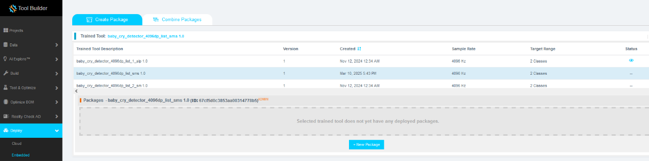 Explorer Tier を利用している場合は、事前に用意された baby_cry_lsp_v1 を選択してください。