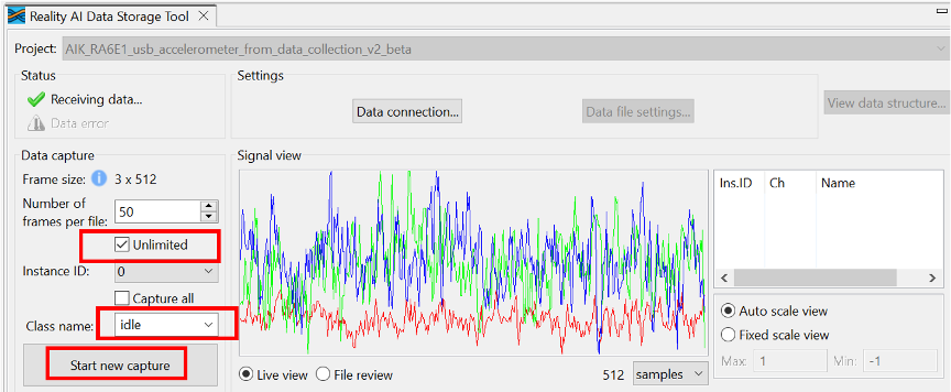 - Pre-recorded data files and project templates provided by the Renesas Reality AI team