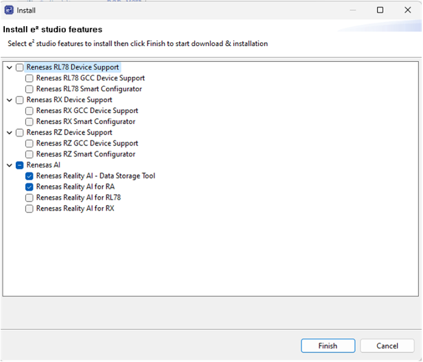 - In the list of available features, select Reality AI and then click Finish.