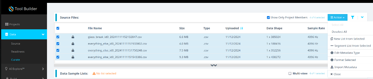 次に、データを前処理/セグメント化します。「Action」ボタンから Segment List from Selected を選択します。
