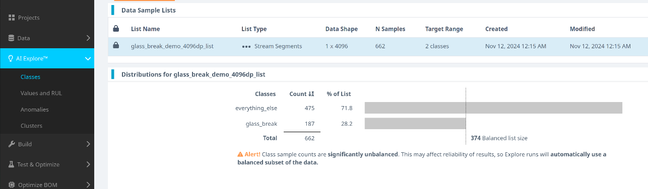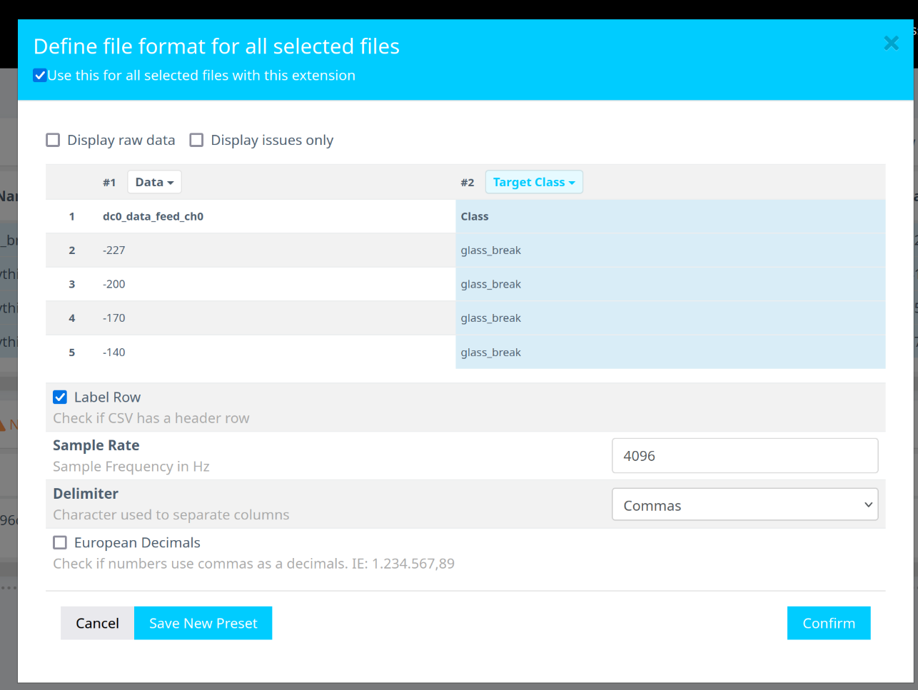 2つ目のクラス(everything_else など)を「Target Class(ターゲットクラス)」として選択し、サンプルレートを 4096 に設定します。