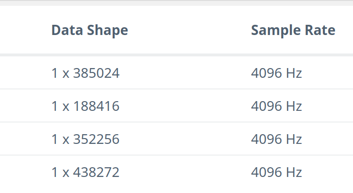 データの形状が 1 x {サンプル数} に、サンプルレートが 4096 Hz になっていることを確認します。