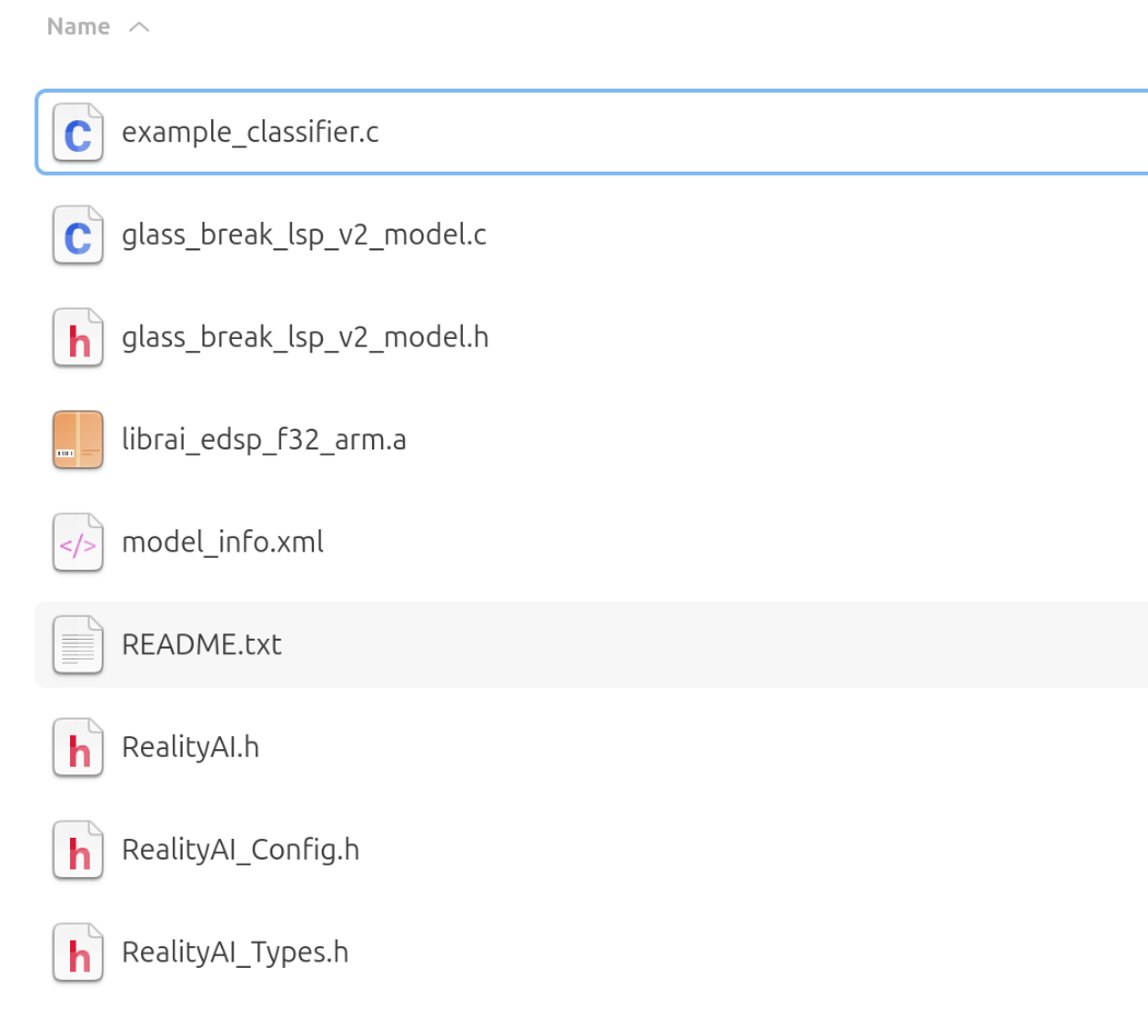 例:モデル関数の呼び出しは glass_break_lsp_v2_model.h に記述されています。